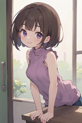 masterpiece, best quality, extremely detailed, anime, blue eyes, silver hair, Double buns, round face,<lora:flat2:0.1> <lora:lightline:0.6>,smile, BREAK {sleeveless sweater|Oversized sweater|Oversized sweater},{standing|sitting|Leaning forward},,
