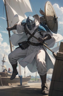 拙著、大航海時代風世界を舞台にした海洋冒険ファンタジー小説 『El Pirata Del Grimorio ~魔導書の海賊~』(※下記URL参照) の主要キャラ、赤ずきんちゃんのような少女錬金術師(にして海賊)が使役するゴーレムを、生成したイラストを材料に画像処理して作成。 ゴーレムだと言ってるのにどうしても人間にしようとするので、手動で肌を灰色にしてゴーレムっぽく。 なんとなくアメコミのヴィランにもいそうな感じにもなったので、お題の「カートゥーン」にちなみUP!