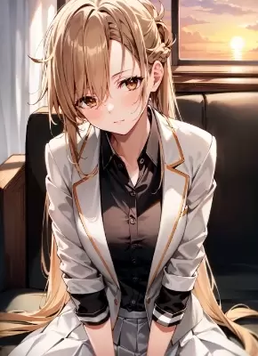 (masterpiece:1.2), (hyper extreme detailed:1.2), (illustration), best quality, high resolution, highres, (solo, 1girl:1.2), (asuna \(sao\):1.3), (brown eyes:1.3), beautiful detailed eyes, extremely detailed face, (light brown hair, long hair, half updo, parted bangs), shiny hair, beautiful detailed hair, medium breasts, shiny skin, sitting on throne with golden decoration, in gorgeous throne room, red carpet, column, indoors, from above, looking up, gorgeous tiara, gorgeous jewelry, earrings, princess, (white dress:1.3), gold trim, blue decorations, bare shoulders, white gloves, elbow gloves, legs together, (v arms:1.3), ultra-detailed clothes, ultra-detailed clothes wrinkles, beautiful ultra-detailed background, cinematic lighting, cinematic shadow, detailed light, overexpose, cinematic postprocessing, cinematic scene, cinematic composition, strong rim light, detailed rim light, ambient occlusion, ray tracing, chromatic aberration, specular reflection, HDR, drop shadow, core shadow, beautiful detailed glow,
