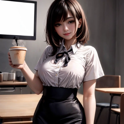(cinematic light),8k, hyper detail, dramatic light,high resolution,(science fiction world:1),(Classroom of the Future:1.2),best quality, masterpiece, 1 female, new female teacher,white skin,brown eyes,detailed face,kawaii female,(realistic:1.0),(black hair),medium hair,BREAK,schoolteacher,flat chest,23 years old,large breasts,standing,model pose,Cyborg girl,(happy:0.8),perspired, <lora:add_detail:1>