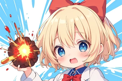 girl with blonde short hair and a red ribbon, looking surprised and curious in a futuristic city, with detailed blue eyes, (futuristic city:1.2),(science fiction:1.35), wearing a stylish long-sleeved white coat, (high-quality:1.25), (ultra-detailed:1.1), (vibrant:1.05),loli,blond hair short hair,(hair bow:1.2),red bow,blue eyes,