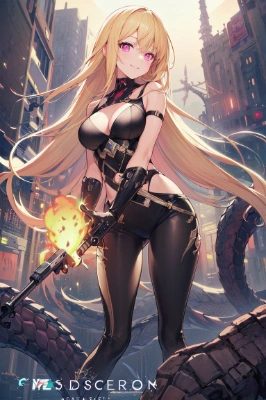 , masterpiece, best quality, extremely detailed, beautiful detailed glow, ultra high res, beautiful, best aesthetic, 8k, anime, a pretty woman, longhair, blonde hair, pink eyes, ((medium breasts)), smile, ((SF, science fiction)), show off panties <lora:flat2:0> <lora:hairdetailer:0.5> <lora:hohoaka:0.4> ,