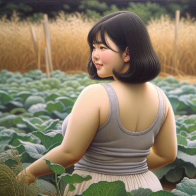 plus size woman、花柄の水着。ウィンク。ジャンプ。森。川辺で遊ぶ。水しぶき。小鳥が飛んでいる。2人。 美しい。 \"Create an illustration that merges anime-style character design with the intricate brushwork typical of a detailed oil painting. The character should blend smoothly into the scene, with no harsh outlines but rather soft shading to define their shape. The textures of the clothing and hair should be particularly emphasized, with fabric folds depicted in a lifelike manner and hair strands detailed with precision. The strokes should be fine and nuanced, allowing the textures of the materials to stand out, giving the character a tangible presence within a color-rich but lighting-neutral environment.\"
