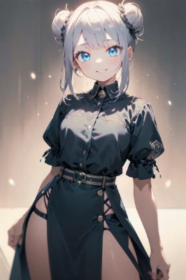 masterpiece, best quality, extremely detailed, anime, pretty little girl,upturned eyes, (swept bangs)longhair, blue hair, blue eyes, ((blue frame) round glasses), ((medium breasts)) ,ultra-detailed face <lora:hairdetailer:0> <lora:hohoaka:0.15> ,Slit skirt,