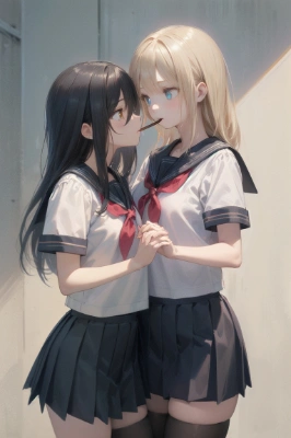 masterpiece, best quality, extremely detailed, anime,1girl, faint lips, cleavage, collarbone, short hair, multicolored hair, hair bun, brown hair, double bun, short hair with long locks, pocky in mouth, incoming pocky kiss, incoming kiss,closed eyes, upper body, pov , <lora:flat2:-0.2> <lora:hairdetailer:1> ,