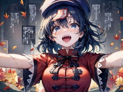 <lora:KasodaniKyouko:1>, (emerald brooch, :1.4), (voluminous short hair:1.4), (closed eyes:1.5), (singing:1.3), (shouting:1.3), (extend both arms:1.3), (joy:1.5), (happy:1.4)