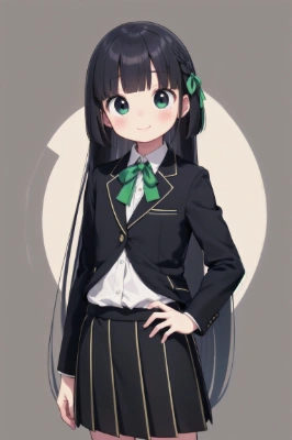 (((very longest hair))),black hair, smile,straight Hair,hair ribbon,mintgreen stripe,Black Eyes,flat chest,straight Across bangs,princess Cut, Very Long Sideburn,roundry Head,Droping eyes,cute,Meekness,Bob Cut,long back hair,12 years Old,, crown,