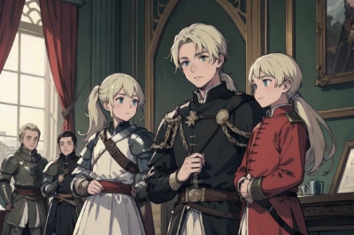 1枚目:兄上と側近、いずれ側近になる少年と妹。 2枚目:家族写真かな? 笑。中央右の青が兄上で、左の赤が姫? 白いの誰か気になる。 3枚目:側近達と。中央3人の真ん中っぽいけど、髪色的には右側かな。↑の白装束をおとっぽくしたのがいる。 4枚目:凛々しい兄上。左側の姫? も大人っぽい。数年後かな。 5枚目:兄上と側近達。雰囲気的には中央左の緑なんだけど、っぽさなら右の赤か? 6枚目:精悍で凛々しくて兄上っぽくないんだけど、鎧がFEのアーマーナイトっぽいので。