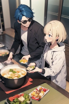 masterpiece, best quality, extremely detailed, anime, zoom up, face, mecha musumeThe background is an illustration of a coronation ceremony where a man with medium-length blue hair, sunglasses, and a military uniform is placing a crown on the head of a woman with short blonde hair and a military uniform, with confetti dancing in the background.,