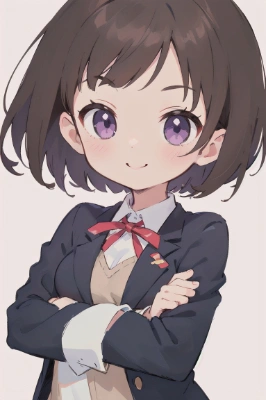 masterpiece, best quality, extremely detailed, anime, girl,<lora:flat2:0.55> <lora:hairdetailer:0> , bobcut, brown hair, purple eyes, (loli face:1.2),((medium breasts)),, blazer, dancing, stage, Top Light,