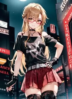 (masterpiece:1.2), (hyper extreme detailed:1.2), (illustration), best quality, high resolution, highres, (solo, 1girl:1.2), (asuna \(sao\):1.3), (brown eyes:1.3), beautiful detailed eyes, extremely detailed face, (light brown hair, long hair, half updo, parted bangs), shiny hair, beautiful detailed hair, medium breasts, shiny skin, full body, smirk, closed mouth, stylish pose, dutch angle, dynamic angle, (sunglasses), (looking over eyewear:1.3), (black leather jacket:1.3), double breasted, open jacket, (white sweater), belt, (black skirt), (white sneakers), night, night sky, (full moon), cityscape, skyscraper, rooftop of building, backlight, (neon lights, neon sign:1.3), (illuminate:1.2), ultra-detailed clothes, ultra-detailed clothes wrinkles, beautiful ultra-detailed background, cinematic lighting, cinematic shadow, detailed light, overexpose, cinematic postprocessing, cinematic scene, cinematic composition, strong rim light, detailed rim light, ambient occlusion, ray tracing, chromatic aberration, specular reflection, HDR, drop shadow, core shadow, beautiful detailed glow,