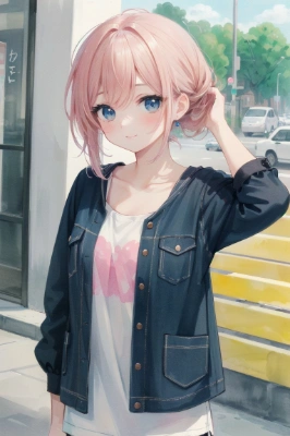 masterpiece, best quality, extremely detailed, anime, girl, (absurdres,hires,ultra detailed,best quality,hyper quality,top quality,masterpiece,HD,16K,sophisticated detail,perfect detail,tangle:1.2), beautiful detail hands,perfect detail hands ,photo realistic,<lora:hairdetailer:0.5> <lora:eyecolle_euphorbia_v100:1> , 1girl, little smile, clear, (pastel color, colorful:1.3), (cute, kawaii, charming girl:1.2), watercolor, fain touch outline, fantastic illustration , (back ribbon dress, looking back:1.3), (background castle garden:1.3),,