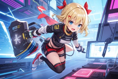 2girls, short hair, blonde, blue eyes, red ribbon,(hair bow:1.2),red bow, making string telephone network, youthful, anime style, medium bust, cute expression, sitting, surrounded by multiple string telephones, indoor room, light-filled, modern decor, pastel colors, large window, urban skyline, soft smile, casual clothing, light blue shirt, denim shorts, white sneakers, detailed string telephones, various colors of strings, hands delicately holding string telephone, focused gaze, playful atmosphere, technological elements, contemporary, creative, artistic,<lora:flat2:-0.6>
