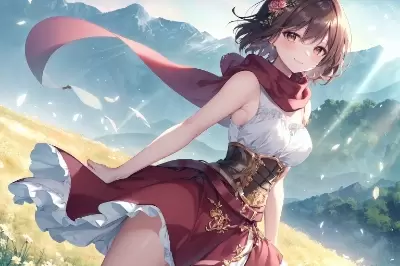 (masterpiece, best quality, great:1.2), illustration, CG, dancing, smile, open mouth, long hair, black hair, blue eyes, white dress, frills, lace, delicate face, cute face, kawaii, delicate hair, wind, disheveled hair, floating hair, shiny hair, shiny skin, Straw hat, thundercloud, blue sky, girl walking in the back alley, (light pink lips:0.8)