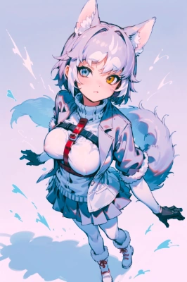 (maid, maid uniform:1.6), from below, (masterpiece, best quality, top quality, ultra detail:1.4), (Otaku, bisyoujo, Azurlane, Anime art, illustlation:1.4), sand_cat_(kemono_friends), cat ears, blonde hair, short hair, yellow eyes, 1girl, animal ears, solo, tail, white shirt, cat girl, animal ear fluff, extra ears, fang, hair between eyes, <lora:KF_SandCat:0.7>