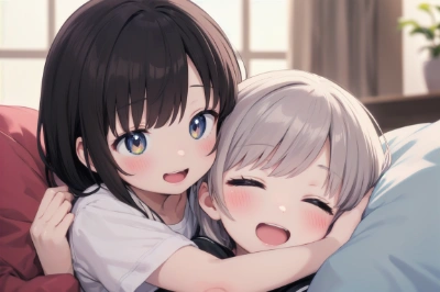 masterpiece, best quality, extremely detailed, anime, zoom up, face, , cheeks, girl, boy, two people, hug, happy, holding hands,