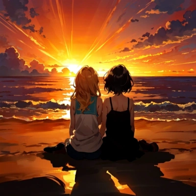 海辺の砂浜で犬と遊ぶブロンドちゃん。 特に捻りもなくそのままです。 生成機使用