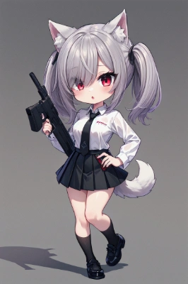 (masterpiece), (best quality),(ultra-detailed),(illustration),(extremely detailed),(perfect anatomy),(super detailed skin),(detailed),(beautiful detailed eyes),1girl,(chibi:1.1),(dog girl),dog ears,dog tail,(floppy ears:1.1),red hair,yellow eyes, medium hair,large breasts,smile,china dress, side slit,bare shoulders,arms behind back, full body, heart background,<lora:flat2:0.2> <lora:hairdetailer:1> ,,