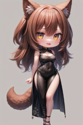 (masterpiece), (best quality),(ultra-detailed),(illustration),(extremely detailed),(perfect anatomy),(super detailed skin),(detailed),(beautiful detailed eyes),1girl,solo,chibi only,chibi,dog girl,dog ears,dog tail,pink hair,long hair,green eyes,raised eyebrows,dress,yellow dress,gradient dress,short sleeves,blue bow,platform footwear,sitting,knees up,star (symbol),plaid background, smile<lora:flat2:0.15> <lora:hairdetailer:1> ,,