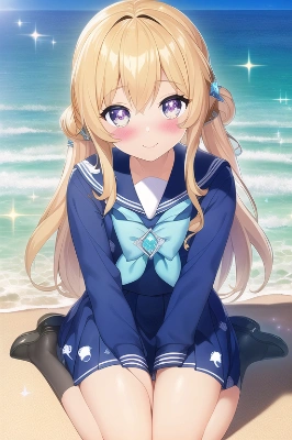 masterpiece, best quality, extremely detailed, anime, beautiful girl. sitting glitter-eyes. in (cute diamond_cross pattern print )cute uniform.diamond_accessory . ocean <lora:flat2:-1> <lora:hairdetailer:1> ,
