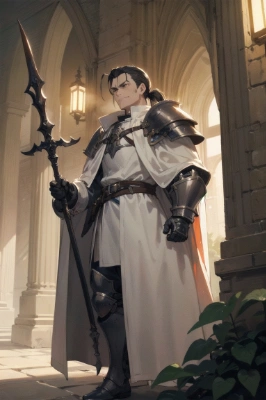 お題の「ヒール」にちなみ、〝かかと〟ではなく〝悪役〟の意味のヒールキャラを……。 拙著、大航海時代に似た世界を舞台にした海洋冒険ファンタジー小説 『El Pirata Del Grimorio ~魔導書の海賊~』(※下記URL参照) で、主人公の海賊達を追う敵役、精鋭騎士団の魔術担当官、もと魔女の修道女にして騎士、ヘカテー女神の使い魔も使役するお姉さんの戦闘シーンを作成。 これまでのプロンプト実験のデータ蓄積があったので、黒い修道女服の上に甲冑を着け、さらにテンプル騎士団のような白いサーコートを着けるという複雑な服装も意外とすんなり生成。 でも、弓を引くポーズをとらせようとしてもどうしても引いてくれない……。 また、使い魔も一緒に出そうとしたのですが、一人のキャラに融合してしまうので諦めました(^^;