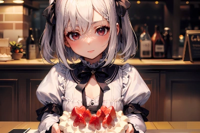 very cute female child,10 yo,white hair,bangs,medium hair,blue eyes,flat chest,