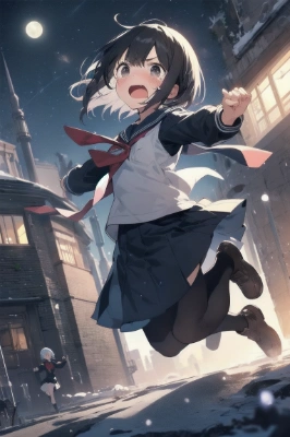 masterpiece, best quality, extremely detailed, anime, girl, miniskirt, friends, girl, longhair, ponytail, long sleeve, black hair, brown hair, black eyes, orange eyes, multiple people, colorful, spring, school, clear sky, blue sky, panty shot, smile, playing, waving, laughing, winking, happy, blazer, greatbust,