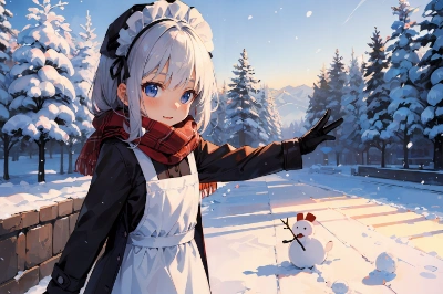 maid,maid headdress, maid apron, coat,gloves,scarf,