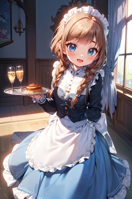 ((maid costume, long sleeves, white maid headless, frill apron)),