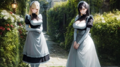 maid,((1lady)),mature,solo,standing,breast suppress,looking at viewer,
