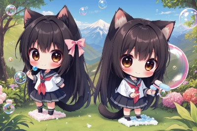 今年ももう一月近く過ぎたわね 先生よ 今日は最近出番が少ない先生がなぜ出番が少ないか考えたわ ここからしばらくメタ発言が続くわ 嫌ならブラウザバックしなさい 最近出番が多い子と比べたの。答えは簡単だったわ 先生には 「抱きしめたくなる愛くるしさ」が足りなかったのよ あの、ちび猫だったかしら?彼女にはなんかこう、 抱きしめたくなるぬいぐるみ的愛らしさ が有るのよ 幸い先生にも動物っぽい耳が後付だけど生えてるわ だから先生もなってみたのよ! ちびキャラに 後、動物的な愛らしさといえば、 なにか食べてる のも大切だわ! 中の人も言ってたわ 「ちびにゃんが何か食べてるだけで優勝」とね だから先生も食べ物食べてみたわ 勿論何食べるかも重要よ どんなに先生が可愛い仕草で食べてても パロット(孵る直前のアヒルの卵を茹でたもの)食べてたら一気に修羅場よ! 今回はオーソドックスにケーキ選んだわ その時眼を閉じてると一層効果的ね ただ、なんかこう、確かに可愛くなった気はするわ でも、キャラ崩壊してない? 可愛さだけで出番増やすのは難しいわね… ってなんでこのポストが 「ちびにゃんシリーズ」にカテゴライズされてるのよ? まさか… 出たわねちびねこ! え?「うさみみは崩壊しやすいからねこみみのほうがいい?」 そ、そうなの? 「あと、碧眼は眼力強すぎるから茶色の方が優しく見える?」 べ、勉強になるわね… 「めがねも眼力上げちゃうから裸眼推奨?」 へ、へぇ… 「ツインテールも動きの学習少ないからロングヘアのほうがふわふわ髪の毛になりやすくてカワイイ?」 なんですって? でも解った。やってみるわ! やってみたけど…これじゃ… ただのちびにゃんの2Pカラーじゃないの! 次はちゃんとツインテバニーメイド先生に戻るわ! 期待していてね!