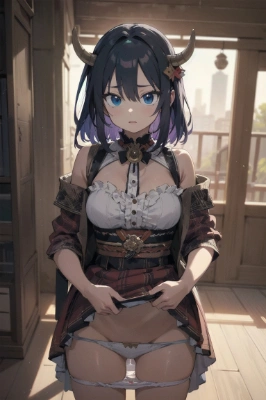 masterpiece, best quality, extremely detailed, anime, cute and sexy girl, Micro mini skirt maid uniform, black hair, blue eyes, Double buns , black cat ear, dark skin,cleavage, big breasts, black cat tail, ,, ((maid)), Confident Stance ,, <lora:eyecolle_clematis_v100:1> ,