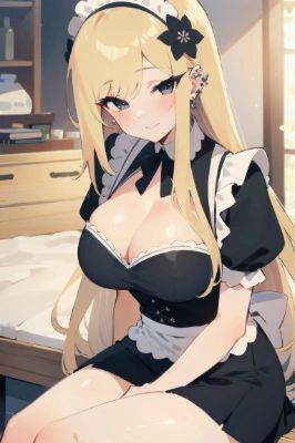 masterpiece, best quality, extremely detailed, anime, girl, (((miniskirt ))) , longhair, blonde hair, black eyes,gal,Piercings, cleavage ,sweat,inner,smile,blush ,love jouce,((Flower blizzard)),breast,sholder,,,, maid, makeup<lora:flat1:0.6> <lora:flat2:0.6> <lora:eyecolle_clematis_v100:1> ,