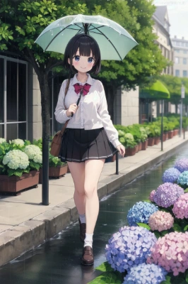masterpiece, best quality, extremely detailed, anime, girl, skirt, sitting on stone steps of Japanese shrine, autumn leaves, Stretch out one hand and catch the falling leaves, warm sunlight filtering through the trees, smile, perfect arms,