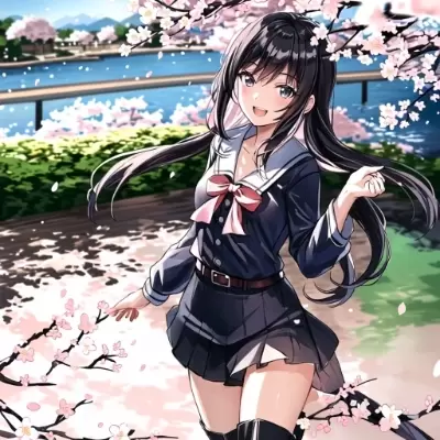 highres, extremely detailed 8k wallpaper, full body, long wide shot,dutch angle, dynamic angle, fusion (watercolor:0.7) and (sketch:1.0) and (outlines:1.0) styles, running, sakura bakushin o \(umamusme\), smile, open mouth, , blue sky, (ground on the botanical japanese garden:0.8), (flurry of falling cherry blossoms:1.2), (Cherry blossoms in full bloom:1.3), (blizzard of falling cherry blossoms:1.1), <lora:sakuraBakushinO_v10:1>