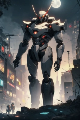 masterpiece, best quality, extremely detailed, anime, girl, skirt, mantis, girl, longhair, maid uniform, short sleeve, puff sleeve, garter belt, pink hair, odd eyes, maid, fantasy, horror, monster, sword, ruins, night, night sky, night view, panty shot, angry, running, jumping, sword fighting, greatbust, battle,