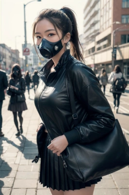 (photorealistic:1.4), (RAW photo), masterpiece, best quality, extremely detailed, lady, officer worker, white dress shirt, navy vest, navy tight skirt, black pantyhose, rubber gloves, mechanical helmet, mechanical headset, mechanical mask, smile, hypnotic state, obedience,