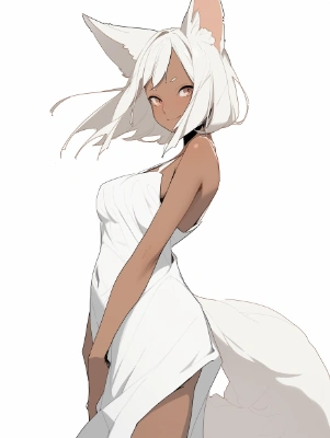magnificent view, cinematic scene, on mountain, 1 adult female, leader lady, beautiful and adult dark-skinned female, japanese miko clothes, smooth silk texture, blonde hair, short hair, fox ears, red eyes, small breasts, thick eyebrows, black undershirt, extremely detailed structures,, best quality, amazing quality, very aesthetic, absurdres