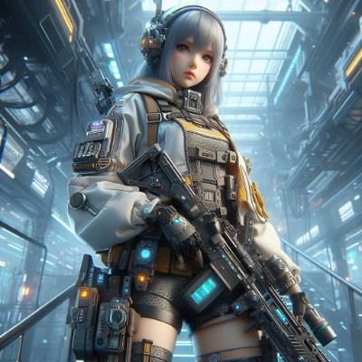 Ultra-high definition images, ultra-modern architectural background, one beautiful girl, dressed in cyberpunk clothing, carrying a weapon with advanced science on her hip, blue eye, by guraAIart,<lora:EMS-71878-EMS:0.200000>