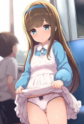 [[element school student}} , pervert, {{{beautiful skin beautiful eyes beautiful face silky hair beautiful hair detailed intricate,high definition ,very aesthetic ,high definition hair}}} ,NSFW, Lwrd,kindergarten smock, skirt lift, child panties, high-waist panties, printed panties, {{{stained panties}}}, frilled panties,embarrassed, [toddler child], love juice, train,