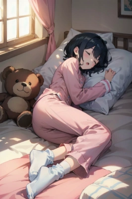 うーん、ママ、ロスタイムあと五分だけお願い…。 ほら「先生」(クマのぬいぐるみの名前)ももう少し冬眠したいって言ってる…ムニャムニャ この機会に同プロンプトを使用し、AiPictors様の生成機で普段使いしてる(親の顔よりモデル) blue_pencil-v10.safetensors ら数点以外のモデルを色々試してみました 一枚目:animagine-xl-3.0.safetensors と 二枚目:bluePencilXL_v200.safetensors は 最近Pictorsの生成機に新たに加わったモデルです。それぞれ特色がある感じ。 このお題だと 三枚目:hotarubreedTypeASemi_v10.safetensors 四枚目:coquett_v10.safetensors 五枚目:ChromaFT_v2.safetensors 辺りが使いやすかったですね。 普段使わないものの中には結構癖の強いのもありましたね。勉強になりました 関連:冬眠も暁を覚えず https://www.aipictors.com/works/267045/