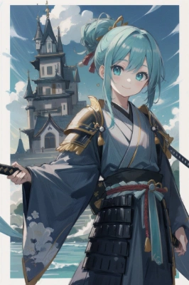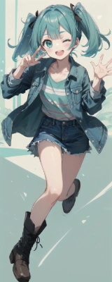 wink, masterpiece, best quality, highres, 1otoko no ko, yellow cardigan, (brown pleated skirt), かわいい, flat chest, aqua hair, aqua eyes, half updo, eating Seaweed roll, dining room<lora:flat2:0> <lora:hairdetailer:0.5>,