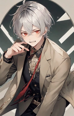 masterpiece, best quality, extremely detailed, anime, , boy, a cool boy, good-looking guy, handsome man, semilong, half up, , boy, a cool boy, good-looking guy, handsome man, shorthair, long sleeve, T shirt, silver hair, red eyes, fang, Angry, sit,look up, Backlit,