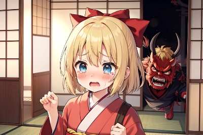 1girl, blonde hair, short hair, blue eyes, red ribbon in hair, (hair bow:1.4),red bow,wearing white kimono and hakama, barefoot, standing under waterfall in nature, surrounded by rocks and green trees, holding purification wand, eyes closed in focus, water streaming down her head and body, wet hair and cloth clinging to skin, hints of breasts and hips showing through wet white cloth, hands clasped in prayer, serious and solemn expression, purifying mind and body under cold water, wintery scene with snow on ground (snow:1.1), icy air, breath visible (breath:1.2), birds singing distantly (birds:0.8), dressed traditionally but still a young high school girl, finding strength in the moment, hint of goosebumps on arms from cold, sunlight filtering through icy mist.