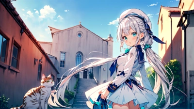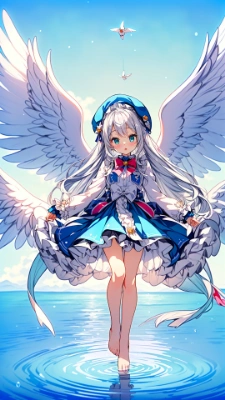 (ultra miracle detail master piece:1.2),(ultra miracle detail Photoshop quality:1.2),(gradation icy color cool color:1.2),(ultra miracle detail beyond imagination light novel illustration:1.2),(ultra miracle detail beyond imagination screen tone:1.2),(hdr wdr iso cgi effect:1.2),(ultra miracle detail innocence lolita pretty cute (kawaii:1.4) cute pretty lolita innocence:1.3),(Fluffy medium long silver hair:1.2),(vivid gradation emerald eyes),(natural make face:1.2),(elf ears:0.7),(elaborate design beret hat),(ultra miracle detail elaborate design white blazer school costume),(elaborate design skirt),(red tie),(ultra miracle detail extremely Exquisite and realistic like a photo art surpass the real elegant thing background:1.2),(ultra miracle detail innocence kawaii:1.2),(medium breasts),(water color:1.2),(foamy dream:1.2),(flying angel:1.2),(barefoot),(sea breeze),(a fantastic sight:1.2),(horizon blue sky),,<lora:add_detail:0.7> <lora:sharpen-soften:0.15>
