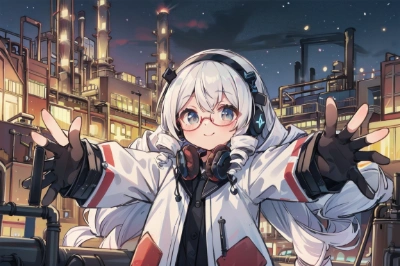 masterpiece, best quality, extremely detailed, anime , perfect anatomy, art nouveau style, fantasy, (tarot art, The strength:1.7), colorful, pastel color, (solo girl), (infinity mark ont the model),(forest background),(white hair, drill hair:1.5), original character, colorful, pastel color, (smile),(thick frame glasses,headphone),(hugging one stuffed Lion:1.6),(upper body model), (white Lolita fashion with flower:1.6),<lora:flat2:-1>, <lora:hairdetailer:1> ,,