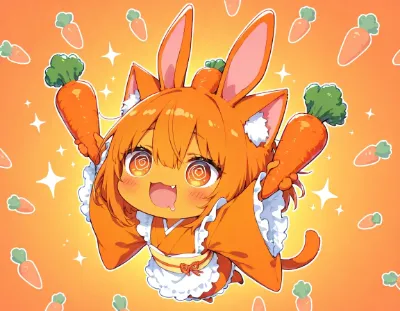 (3girl),(((red kimono maid,long hair))),(Frill,maid headdress,wide sleeves, long sleeves,frilled sleeves), (((obi))), deep red eyes,((long hair)), ((rabbit girl,white bunny ears)),white hair,cute face,((smile,open mouth)), ((loli:1)), ADDCOL
