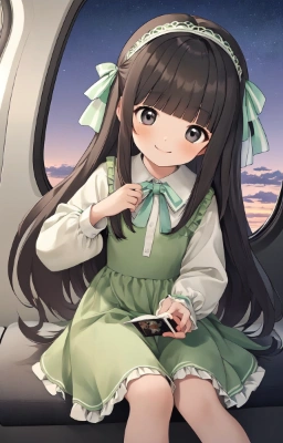 (((very longest hair))),black hair, smile, straight Hair,hair ribbon,mintgreen stripe,Black Eyes,flat chest,straight Across bangs,princess Cut, Very Long Sideburn,roundry Head,Droping eyes,cute,Meekness,Bob Cut,long back hair,12 years Old,loli, smile,