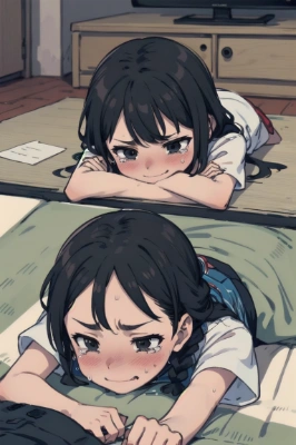 sterpiece, best quality, extremely detailed, anime, zoom up, face, mecha musume, wind, girl, bobcut, tracksuit, black hair, green eyes, original character, student, Japanese style, sunset, summer, school, classroom, writing, blushing, embarrassment, sad, crying, sweating, reading, worried, glasses,, girl <lora:faceage:1> <lora:hairdetailer:0.95> ,