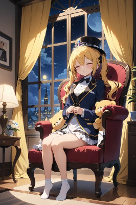 masterpiece, best quality, extremely detailed, anime,Pastel colors,(end),yellow hair_chibi_Straw hat and White Dress_Sleeping on your back on the grass and Holding yellow teddy cute bear in my chest,(End),Sunlight,_grass_gentle breeze_Background,